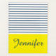 Motif moderne rayé blanc, bleu et jaune avec nom personnalisé