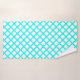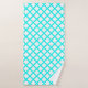 Serviette de bain motif rayures diamant arlequin blanc sarcelle