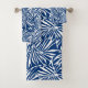 Motif Répétant De Feuille Tropicale Bleue Et Bleue. Un motif répétitif caractérisé par d'élégants feuilles tropicaux blancs, formant un motif enchanteur. Le design évoque un sentiment de nature, avec un feuillage luxuriant qui orne gracieusement un fond de bleu profond