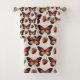 Un motif charmant et vibrant sans couture présentant une disposition répétitive de papillons de style monarque et de fraises mûres. Les papillons sont illustrés avec des bordures noires audacieuses, des pointes d'ailes tachetées de blanc et des dégradés rouges chauds à orange. Entre les deux, des fraises rouges dodues avec des tiges vertes ajoutent une touche de douceur à la composition. Sur un fond blanc cassé propre et crémeux.