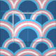 Conception avec un motif arc-en-ciel transparent dans les couleurs (bleu, rose et blanc) du drapeau transgenre; dessin de la fierté trans sur arrière - plan bleu,