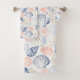Motif de coquillages rose or et bleu marine avec une collection de différents coquillages nautiques sur un arrière - plan blanc.