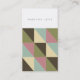 Sobre et sobre, design, design, design design, design, design, design, motif sur modèle de carte de visite blanche qui se démarquera à tous ceux qui le reçoivent ! Parfait pour les designers, stylistes d'intérieur, coiffeurs, managers, esthéticiennes etc. Avec son motif à répétition triangle tendance dans des couleurs contemporaines et ultra modernes pour 2017 et au-delà ! Vous pouvez personnaliser ce modèle carte de visite/carte de rendez-vous facilement ici et maintenant en ligne et les faire livrer à votre porte! Impression de qualité magnifique avec une large gamme de cartons de qualité à choisir. Pour personnaliser avec vos propres détails d'entreprise, il suffit de taper le texte de l'exemple dans les zones situées sous l'en-tête "Personnalisez-le" ou d'appuyer sur la personnaliser pour effectuer des modifications plus détaillées et déplacer/modifier.