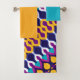 Ce design est plein de couleurs vives et de formes audacieuses. Couches amusantes de jaune, violet, bleu et turquoise. Il a une ambiance festive et ludique avec une touche de style rétro.