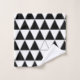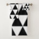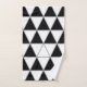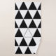 Serviette de bain décorée d'un triangle géométrique motif en noir, blanc et gris. Le rythme est cassé par un triangle en blanc.