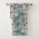 Voici un motif graphique de fleurs de jardin vintages blanches sur un arrière - plan turquoise.