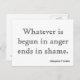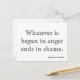 Tout ce qui commence par la colère finit par être honteux. - Benjamin Franklin