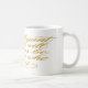 Start your day with a sip of inspiration. This glossy white mug features the radiant gold calligraphy quote “An elegant woman will always be true to who she is.” The flowing script gleams like sunlight, reminding you of strength and authenticity with every pour.
