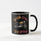 Une tasse à café avec une moto rétro, avec la phrase "Break from the Grind" centrée autour de l'image. Le design laisse présager un sentiment d'aventure et de liberté, offrant une échappatoire paisible de la routine quotidienne.