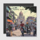 Illustration du centre-ville de Calcutta, Inde Vélos à moteur et cartes garés. Un aimant avec une illustration de la rue animée du centre-ville avec des immeubles, des restaurants, des magasins et des gens sur leurs motos.