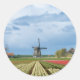 Moulin à vent et tulipes autocollant rond paysage