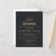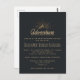 Carte postale d'invitation à la réunion de famille avec illustration couleur or sur un arrière - plan gris-noir. Conçu avec une illustration d'une montagne avec les rayons de soleil brillant vers l'extérieur de derrière. La typographie dit : Aventure explorer la découverte de rêve.