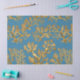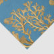 Mousseline Algues d'or sur papier de tissus bleu Aqua