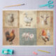 Six animaux de ferme en papier de découpage de tissu collé pour les projets de mobilier et d'artisanat