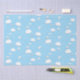 Ce papier d'emballage cadeau amusant présente divers avions en papier blanc plié illustré et leurs pistes de vol avec des nuages bouffants sur un arrière - plan bleu ciel - arrière - plan est montré en bleu, mais peut être customisé à toute couleur qui contraste avec les graphiques blancs dans le design - par katz_d_zynes