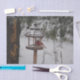 Papier de Noël moderne avec un peu de cardinal rouge, et une maison d'oiseaux. Le texte Joyeux Noël en or peut être personnalisé, ou le texte est amovible. Un paysage extérieur dans la neige.