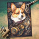 Mousseline Corgi Steampunk 1 papier découpage
