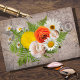 Ce bouquet vibrant de marguerites et de ranunculus mélangés à des fougères est parfait pour tout projet de découpage ou événement de don. Apportez la nature dans vos projets avec de belles teintes jaunes, orange et vertes.
