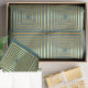 Papier de tissu bleu turquoise et or brillant, élégant et brillant, avec des carrés dorés brillants étroitement liés pour produire une illusion 3D captivante.