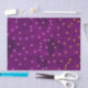 Des étoiles simulées de fausse parties scintillant dorée et violette se dessinent sur un motif de style aquarelle grunge dans des tons de prune violet profond.