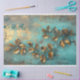 Mousseline Feuille d'or et papier tissu botanique turquoise