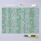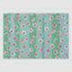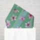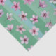 Des fleurs de prune rose flottent sur des rayures vertes et aqua.