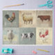 Six animaux de ferme en papier de découpage de tissu collé pour les projets de mobilier et d'artisanat