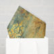 C'est un motif décoratif orné dans les tons or, turquoise et rouille. Le design présente des motifs complexes et symétriques de damas ou d'arabesques qui ressemblent à des feuilles d'acanthus stylisés, des rouleaux et des éléments floraux disposés en colonnes verticales. Les motifs ont un aspect triste, patiné avec des zones défraîchies et usées, révélant turquoise et rouille sous la couche dorée. Cet effet de patine vieilli donne au design une atmosphère antique ou vintage.