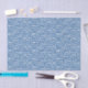 Un papier de tissu avec des mots de Noël. La motif est composée des mots "Joyeux Noël", "Hohoho", "Père Noël", "Paix", "Célébration", "Joie", "Joyeuses Fêtes" et "Amour" en bleu et blanc. Customiser la taille du motif, la couleur arrière - plan entre autres options.