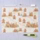 Une scène joyeuse d'hommes en pain d'épice qui s'amusent tout en vous saluant de leurs maisons en pain d'épices enneigées. Ce thème fantaisiste est "De notre maison à la vôtre" réalisé par ces personnages mignons pour Noël. Les petites figurines et les maisons douces sur les collines d'hiver sont un papier d'emballage charmant pour vos cadeaux de vacances d'hiver. La scène est réalisée à partir d'un motif d'aquarelle vintage.
