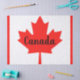 Papier de tissus avec l'image du drapeau canadien et le mot, Canada en couleurs rouge et blanc.