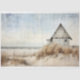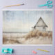 Découvrez la beauté d'une petite maison de plage pittoresque au milieu du sable, de l'herbe haute et de l'océan sur ce beau papier découpage. Elevez vos créations avec ce chef-d'oeuvre astucieux et tranquille, dans des teintes douces et muettes, qui rappellent un tableau.