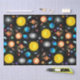 Design artistique original de planètes colorées, soleils, nébuleuses, galaxies, amas d'étoiles et plus encore par l'artiste / designer Carolyn McFann de Two Purring Cats Studio imprimé sur papier de tissu de qualité pour l'espace et les fans d'astronomie des enfants aux adultes.