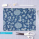 Papier de tissu décoratif chinois à motifs floraux, avec un motif de chrysanthème bleu clair sur un arrière - plan bleu foncé. Ce papier tissulaire est parfait pour votre prochain journal, la fabrication de cartes, les médias mixtes ou d'autres projets d'élaboration de papier. Ce papier de tissu ferait également un joli remplissage pour sacs cadeaux et paniers, fabriquerait pour élégants tiroirs et étagères, et ajouterait un intérêt unique à votre prochain projet do-it-yourself de meubles à cycle élevé.