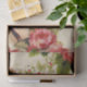 Belle Française entourée de roses, d'éphémères et d'un papillon.