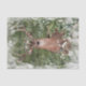 Une tête de cerf entourée de branches avec de la neige. Une feuille de musique verte dans l'arrière - plan.