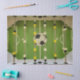 Papier cadeau avec image d'une table de baby-foot en couleurs vert, jaune, blanc et noir.