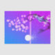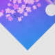 Papier cadeau avec l'image d'une sirène contre un arbre fleuri avec l'océan et la lune dans l'arrière - plan. Une seconde sirène vient la rejoindre.
