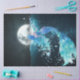 Papier cadeau avec l'image d'une sirène dans la mer par une pleine lune.