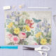 Ce beau papier de tissu vintage de fleurs botaniques aux couleurs de rose, jaune, corail, rouge, bleu, vert avec un papillon bleu sur un arrière - plan d'ivoire est parfait pour l'artisanat du papier, le découpage et l'emballage des cadeaux. Conçu par © Tim Coffey.