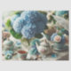 Mousseline Papier Décollé Fleurs d'Hydrangea Bleues et Théièr