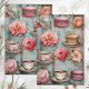 Cette conception de papier de découpage est composée de teacups, macorons et fleurs. L'oeuvre est de Daphne Populiers. Cette conception convient le mieux aux papiers de tissu de 10 po x 15 po et est donc un bon choix pour les projets d'artisanat de découpage qui sont de taille plus petite, par opposition aux plus gros articles tels que les meubles. Cette esthétique est un choix formidable pour la décoration et le design éclectiques, boho, vintage et rétro, et fonctionne particulièrement bien dans la cuisine, le coin cuisine, la salle artisanale et la décoration remise. Quoi que vous choisissiez d'utiliser ce papier, vous êtes sûr de profiter de la fantaisie qu'il apporte à votre environnement. Merci de chercher !