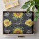 Papier de tissus fleuri, papier de tissus noir et jaune avec motif de tournesol