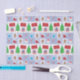 Papier de tissu conçu avec quelques symboles de Noël sur un arrière - plan carré dans les tons bleus. Joyeux Noël!