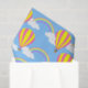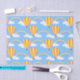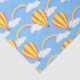 Papier de tissu conçu avec une montgolfière et un motif arc-en-ciel sur le bleu. Customisez l'arrière - plan bleu, taille motif entre autres options.