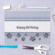 Papier de tissu floral bleu gris accentué de rayures, les larges rayures et l'arrière - plan peuvent être changés en n'importe quelle couleur, et le texte d'anniversaire joyeux peut être personnalisé pour convenir à toute occasion spéciale ou pour tous les jours. Les fleurs sont amovibles pour lui.