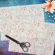 Papier de tissu écru aux fleurs de magnolia rose et motif de saule chatte. Parfait pour envelopper les cadeaux d'anniversaire, ajouter à des sacs cadeaux, ou des boîtes intérieures pour une jolie présentation.