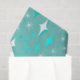 Papier tissulaire avec un motif étoile atomique rétro en turquoise et blanc sur un arrière - plan turquoise clair.