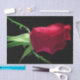 Papier de tissus avec l'image d'un bourgeon de rose rouge contre un arrière - plan noir.