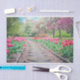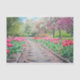 La photographie à thème pittoresque Spring présente un chemin de jardin bordé de belles tulipes roses avec des arbres à fleurs rose, vert et blanc au loin. Parfait pour l'emballage cadeau ou le découpage